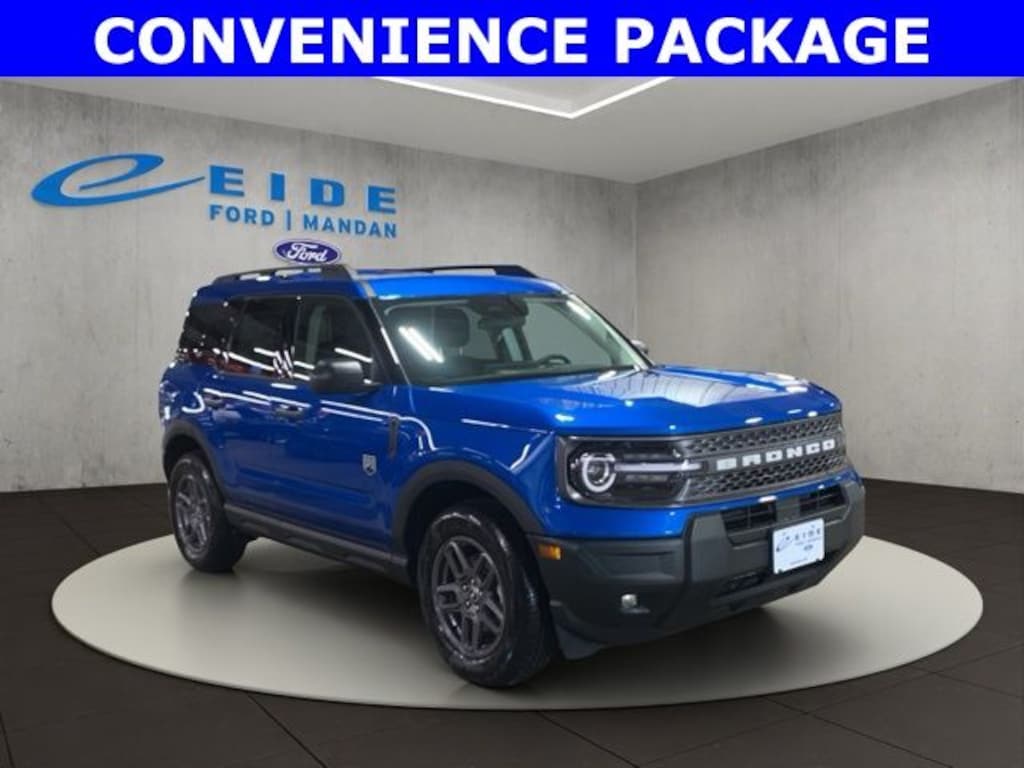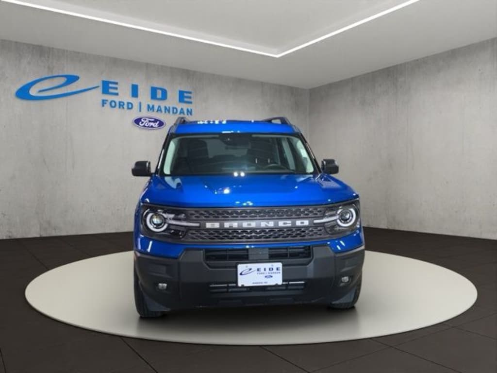 The 2025 Ford Bronco Sport Big Bend 4x4 in Velocity Blue Metallic delivers a versatile off-road capable SUV with modern technology. Powered by a 1.5L EcoBoost engine paired with an 8-speed automatic transmission, it features HOSS 1.0 off-road tuned suspension and a Terrain Management System with five selectable modes for confident handling on any terrain. The exterior includes LED headlamps and tail lamps, roof-rack side rails, heated power mirrors, and liftgate with LiftGlass. Inside, the cabin offers a 13.2" SYNC4 touchscreen, digital instrument cluster, 60/40 split-fold rear seat, electronic auto climate control, and multiple 12V and USB smart charging ports. Safety features include Ford Co-Pilot360 Assist+, rear view camera, BLIS, perimeter alarm, and advanced airbags. Convenience is enhanced with remote keyless entry, convenience package options, and SiriusXM capability.