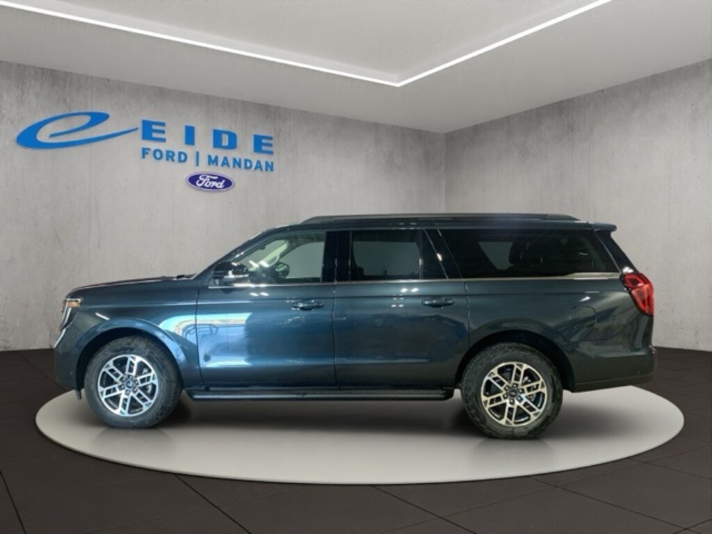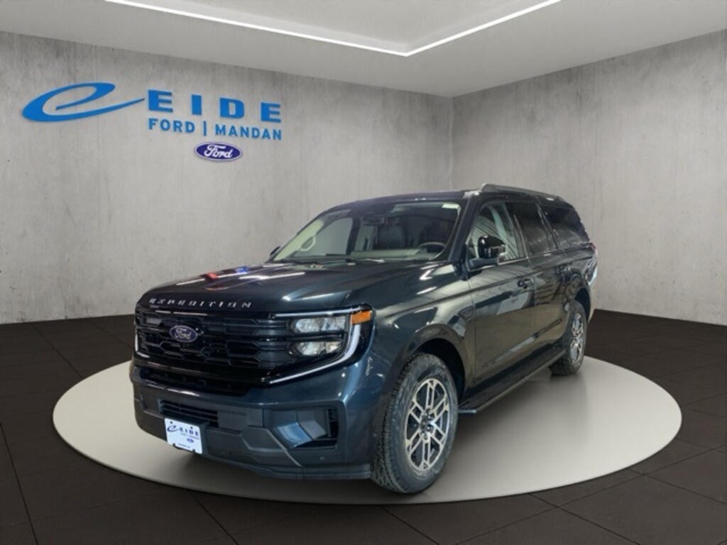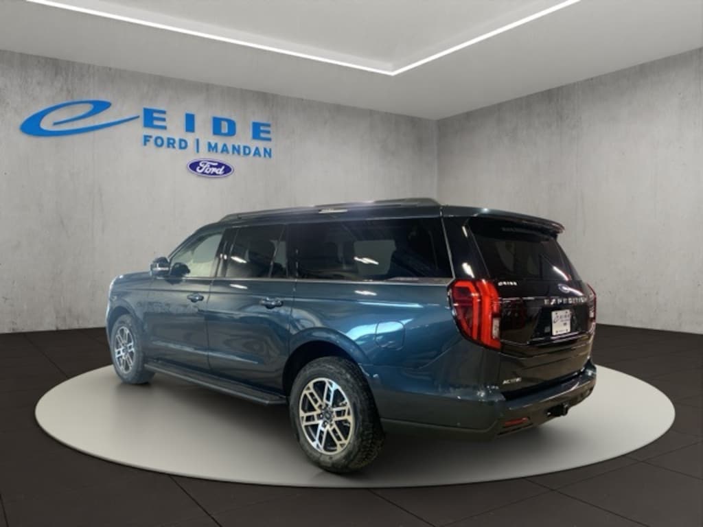 The 2025 Ford Expedition Max Active delivers bold capability and smart convenience in a full-size SUV. Its exterior features include LED reflector headlamps, a power split gate, fixed running boards, roof rack side rails, and a heavy-duty trailer tow package with trailer sway control. Inside, enjoy premium touches like a power-folding third-row seat, tri-zone automatic climate control, a rotary gear shift dial, and a panoramic 24" digital display with a 13.2" center touchscreen. The Intelligent 4WD system, terrain management with selectable drive modes, and hill descent control enhance performance on and off-road. Safety is prioritized with Ford Co-Pilot360 Active 2.0, a suite of advanced airbags, a rear occupant alert, and the SOS Post-Crash Alert System. BlueCruise hands-free driving is also included with a trial.