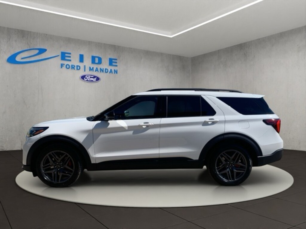The 2025 Ford Explorer ST combines sporty performance with advanced technology and premium comfort. Featuring a powerful 3.0L EcoBoost V6 engine paired with a 10-speed automatic transmission and all-wheel drive, it delivers an engaging and confident drive. The bold exterior in White includes 21-inch Magnetite-painted aluminum wheels, black accents, a sport-tuned suspension, and LED lighting for a striking presence. Inside, the Onyx interior offers simulated suede and leatherette seating with heated leather steering wheel, advanced driver information center, and an integrated navigation system with voice activation. Safety is prioritized with comprehensive features like Pre-Collision Assist with Pedestrian Detection, Blind Spot Information System, multiple cameras including an aerial view system, and advanced airbags throughout. Additional convenience includes a twin-panel moonroof, power liftgate, multiple power outlets, and FordPass Connect 5G hotspot, making the Explorer ST a versatile and stylish SUV designed for both everyday driving and adventure.