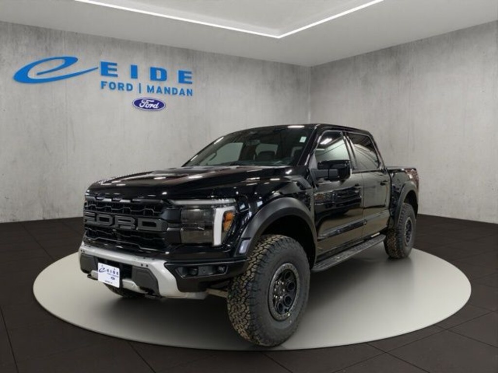The 2025 Ford F-150 Raptor 4x4 SuperCrew combines extreme off-road performance with advanced technology and comfort. Powered by a 3.5L EcoBoost High Output engine and a 10-speed automatic transmission, it features a 5-link rear suspension, dual-valve FOX shocks, and a 36-gallon fuel tank for long-range adventures. The Agate Black Metallic exterior includes LED dynamic bending headlamps, Rigid LED fog lamps, dual exhaust, and 17" bead-lock capable wheels. Inside, enjoy black leather heated and ventilated seats, a 12" productivity screen, head-up display, adaptive cruise control, and heated second-row seats. Advanced features include 360-degree cameras, B&O Unleashed 14-speaker audio, SYNC4 with EVR, terrain management, trail control, mobile office package, Pro Trailer Backup Assist, and a bed utility package for ultimate capability.