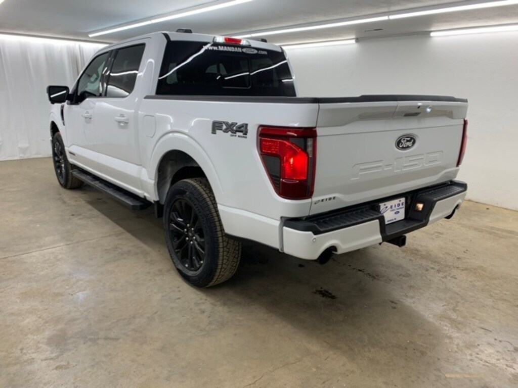 The 2025 Ford F-150 4x4 SuperCrew blends rugged capability with advanced technology. Its exterior features LED reflector headlamps, auto high beams, LED side-mirror spotlights, and zone lighting for enhanced visibility. The power tailgate lock, power-sliding rear window, and bed utility package with tailgate step and work surface boost convenience. Inside, it offers a 12-inch productivity screen, SYNC4 with enhanced voice recognition, B&O sound system, and wireless charging. Safety highlights include Ford Co-Pilot360 features like BLIS with cross-traffic alert, lane-keeping system, pre-collision assist with automatic emergency braking, and reverse brake assist. This truck also boasts the 3.5L PowerBoost Full Hybrid engine, Pro Power Onboard 7.2kW generator, FX4 Off-Road Package with skid plates, and selectable drive modes, making it ready for work and adventure alike.