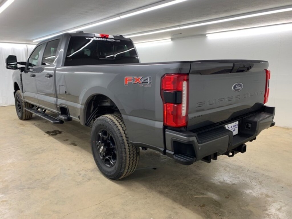 The 2025 Ford F-250 Super Duty SWR 4x4 Crew Cab is built to handle demanding tasks with rugged capability and smart technology. Its bold exterior features black door handles, trailer tow mirrors, and roof clearance lights, while the STX Appearance Package adds 18" Ebony Black aluminum wheels and LED box lighting. Inside, the cabin includes an 8" SYNC 4 touchscreen, manual lumbar driver seat, and tilt/telescoping steering with cruise and audio controls. Functional highlights include a 10-speed TorqShift-G transmission, 3.73 electronic-locking axle, 360-degree camera, and trailer brake controller. Off-road capability is boosted by the FX4 Off-Road Package with skid plates and hill start assist. Safety features like AdvanceTrac with RSC, Safety Canopy airbags, and a rearview camera ensure peace of mind on every journey.
