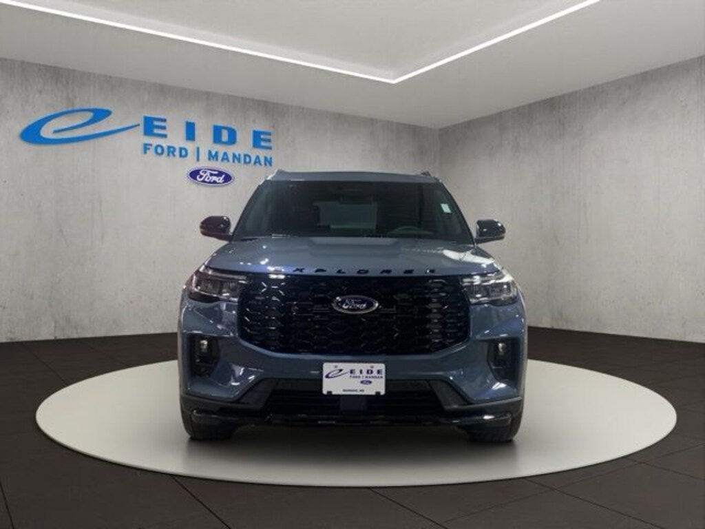 The 2026 Ford Explorer ST-Line 4WD blends athletic design with everyday versatility in striking Vapor Blue. Powered by a responsive 2.3L EcoBoost engine and a smooth 10-speed automatic transmission, it delivers confident performance and all-weather capability. The ST-Line Street Pack enhances its bold presence with 21-inch aluminum wheels, performance brakes, and sport-tuned styling accents. Inside, the cabin features unique Onyx cloth seating, second-row captains chairs with heated seats, ambient lighting, and a premium package that adds upscale convenience touches like a 110V power outlet and auto-dimming rearview mirror. A panoramic moonroof with power shade fills the interior with natural light, while advanced connectivity keeps you seamlessly in touch on the road. With trailer tow capability, sleek LED lighting, and unmistakable ST-Line attitude, this Explorer is designed for drivers who want sporty style without sacrificing practicality.