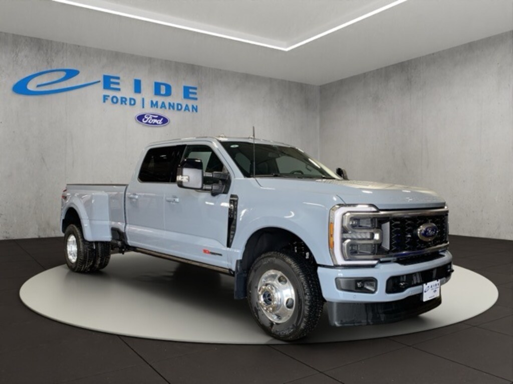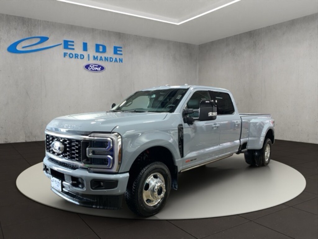 The 2026 Ford F-350 Platinum 4WD Crew Cab blends power, technology, and luxury for demanding jobs and refined travel. Equipped with the 6.7L High Output Power Stroke diesel engine and a 10-speed TorqShift automatic, it delivers impressive performance and towing capability. The Glacier Gray exterior pairs with a Black Onyx/Platinum Blue leather interior for a premium look. Standard features include LED headlamps and taillamps, adaptive cruise control, 360-degree camera, Pro Power Onboard, and a 12" productivity screen. Functional upgrades such as the FX4 Off-Road Package, 5th-wheel/gooseneck prep, and adaptive steering enhance capability. Comfort is elevated with power-deployable running boards, heated and ventilated seats, a Bang & Olufsen sound system, and twin-panel moonroof. Advanced safety tech includes lane-keeping assist, pre-collision assist, and blind spot monitoring.