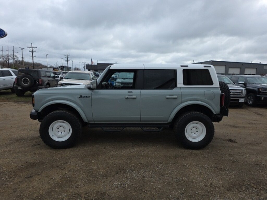 The 2022 Ford Bronco Outer Banks 4-Door Advanced 4x4 in Cactus Gray combines rugged off-road performance with refined comfort and technology. Powered by a 2.7L EcoBoost V6 engine paired with a 10-speed automatic transmission, it delivers impressive power and versatility. The Lux Package enhances convenience with a 12" touchscreen, 360-degree camera, adaptive cruise control, B&O 10-speaker audio system, heated steering wheel, and wireless charging pad. Designed for adventure, it features G.O.A.T. Modes, a locking rear differential, tow hooks, tube steps, and a molded-in-color hardtop with a sound-deadening headliner. Inside, leather-trimmed Roast/Black seats, dual-zone climate control, and SYNC4 with built-in navigation ensure every drive is connected, comfortable, and confidently capable on any terrain.