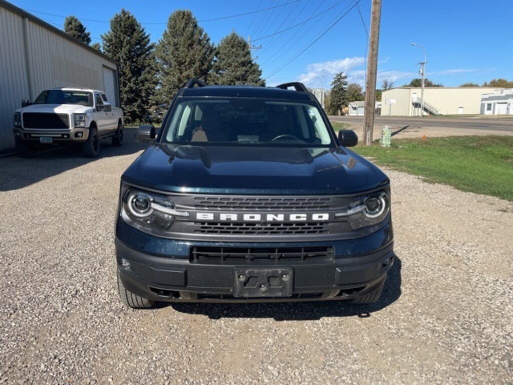 The 2022 Ford Bronco Sport Badlands 4x4 is a rugged and versatile SUV designed for adventure. Its Alto Blue Metallic exterior is complemented by an Ebony Roast leather-trimmed interior, featuring 60/40 split-fold rear seats and rubberized flooring for durability. The 2.0L EcoBoost engine paired with an 8-speed automatic transmission and 4x4 capability ensures confident performance on any terrain, supported by off-road suspension and trail management system. Advanced technology includes Ford Co-Pilot360, SYNC 3 with Apple CarPlay/Android Auto, a rearview camera, and remote keyless entry. Optional features enhance comfort and convenience, such as B&O premium audio, dual-zone automatic climate control, power-adjustable drivers seat, sunroof, and Class II trailer tow package, making it a capable and enjoyable SUV for both city streets and outdoor adventures.