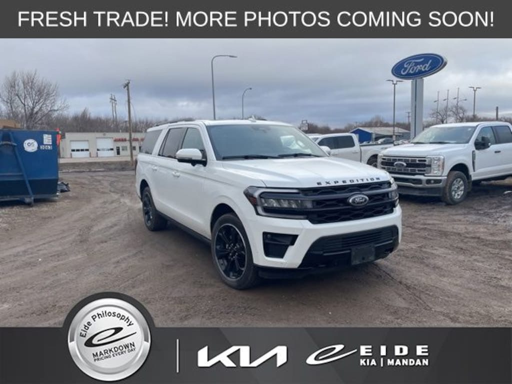 Experience full size luxury and incredible capability with this 2024 Ford Expedition Max Limited finished in stunning Star White Metallic Tri Coat. Powered by a twin turbo 3.5L EcoBoost V6 and equipped with four wheel drive, this SUV delivers impressive power, smooth performance, and confident towing with the trailer tow package. The spacious Expedition Max interior offers three rows of seating with middle row buckets and premium comfort including heated and cooled front seats, heated rear seats, and a heated steering wheel. Enjoy the open feel of the dual pane panoramic moonroof while advanced technology keeps you connected with navigation, Apple CarPlay, Android Auto, Bluetooth handsfree phone, and B and O Play premium audio. Safety features include adaptive cruise control, blind spot alert, lane keep assist, rear view backup camera, and a 360 camera. This one owner accident free local trade in is ready for adventure. Call today to schedule your test drive.