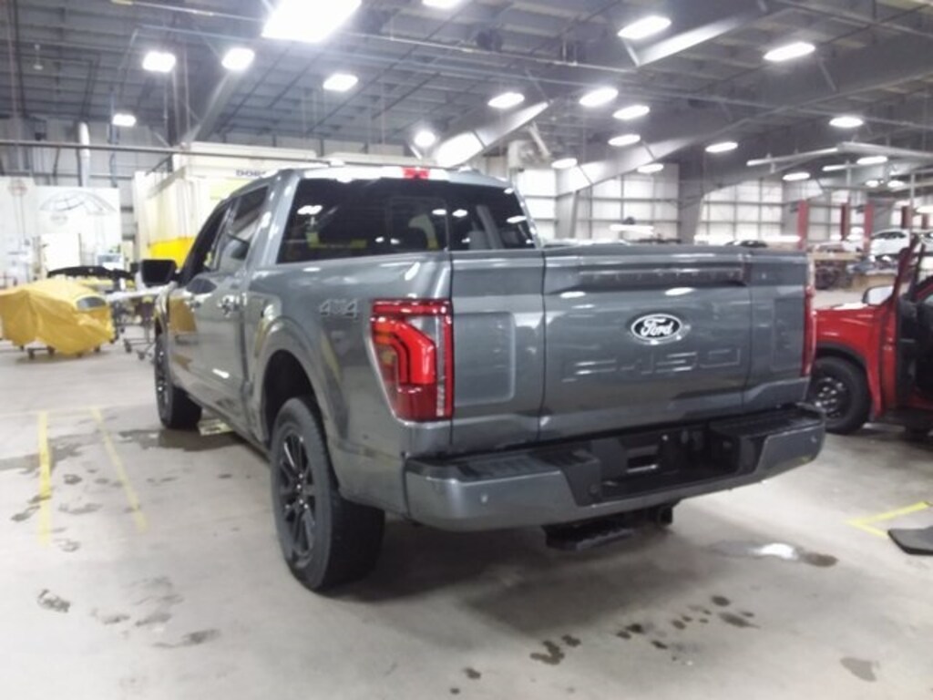 The 2024 Ford F-150 Platinum blends luxury, advanced technology, and rugged capability in one commanding package. Its exterior features LED projector headlamps, LED fog and tail lamps, power deploy running boards, a power tailgate, and a power sliding rear window with defrost and privacy tint, all complemented by zone lighting for enhanced visibility. Inside, the cabin boasts a 12" productivity screen, premium leather seats with heating, ventilation, and memory, heated rear seats, ambient lighting, and a leather-wrapped steering wheel with controls. Functional highlights include a 360-degree camera, B&O Unleashed audio system, FordPass Connect, trailer brake controller, wireless charging, and intelligent adaptive cruise control. Safety is robust with BLIS with cross-traffic alert, pre-collision assist with automatic emergency braking, lane-keeping system, post-collision braking, advanced airbags, and Securilock anti-theft system.