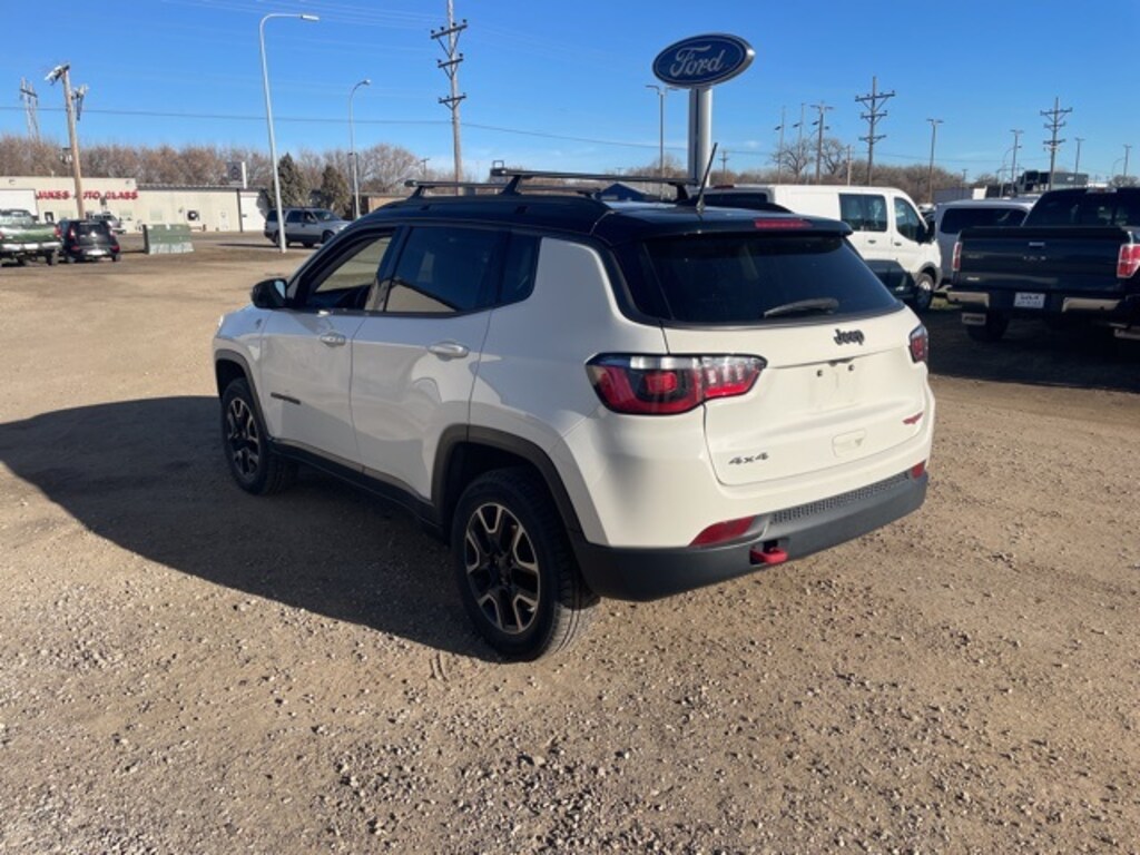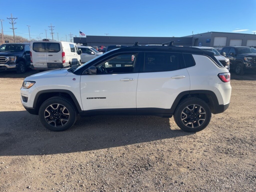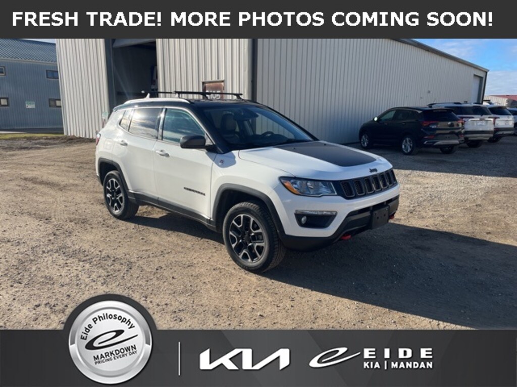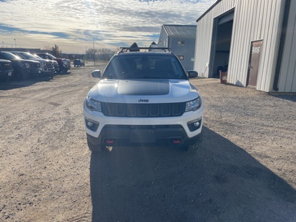 The Jeep Compass Trailhawk 4x4 delivers true off-road capability with its Selec-Terrain system, off-road suspension, Hill Descent Control, and red tow hooks. Powered by a 2.4L I4 engine paired with a 9-speed automatic transmission, its built for confident performance on any terrain. The exterior features 17-inch aluminum wheels, fog and cornering lamps, automatic headlamps, and a two-tone gloss black roof for a bold look. Inside, enjoy premium cloth/leather-trimmed seats, dual-zone automatic climate control, ambient LED lighting, and Uconnect 4 with an 8.4-inch display, Apple CarPlay, Android Auto, and Bluetooth audio. Safety is enhanced with advanced airbags, ParkView backup camera, Electronic Stability Control, and essential skid plates for added protection.