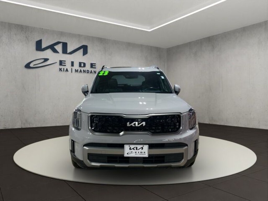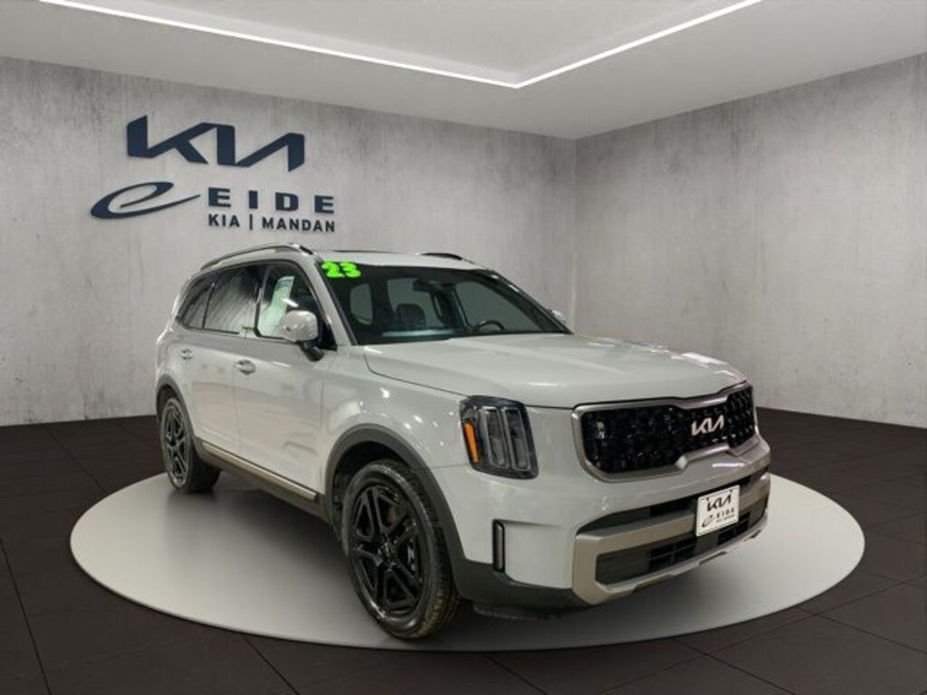 Experience premium comfort and confident capability in this stunning 2023 Kia Telluride EX X Line AWD finished in eye catching Wolf Gray. This one owner, accident free SUV is a local trade in and is packed with the features drivers are searching for. The powerful 3.8L V6 delivers smooth performance while all wheel drive adds confidence in all seasons. Inside you will find luxurious leather seats, heated and cooled front seats, a heated steering wheel, and spacious third row seating perfect for family and friends. Enjoy modern technology including navigation, Bluetooth handsfree phone connectivity, adaptive cruise control, blind spot alert, and a rear view backup camera with reverse sensing system. A sunroof and power liftgate add convenience while the roof rack increases versatility. Do not miss this incredible Telluride. Call today to schedule your test drive before it is gone.
