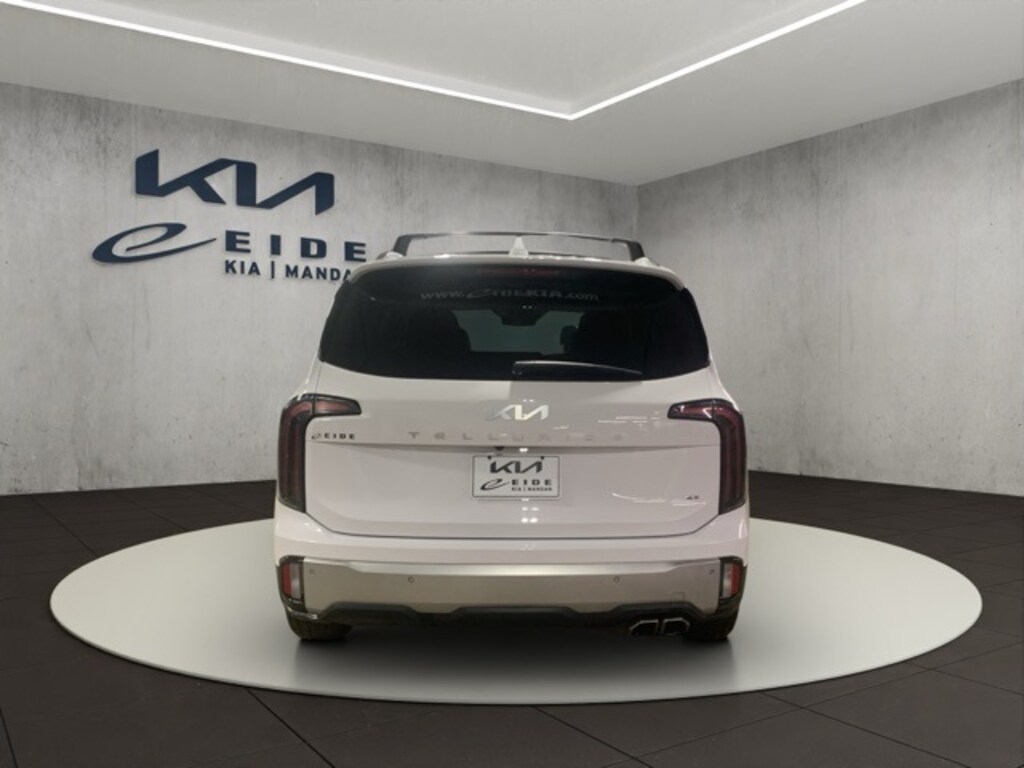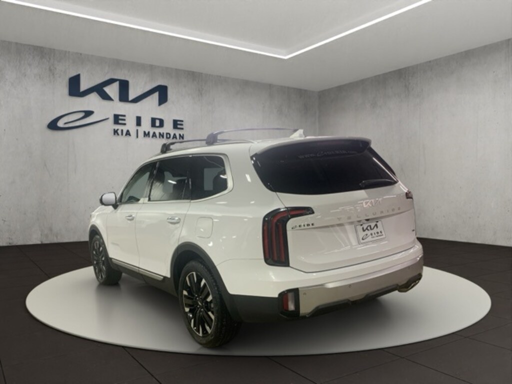 The 2024 Kia Telluride SX Prestige AWD offers luxury, safety, and performance in a capable three-row SUV. Powered by a 3.8L V6 engine paired with an 8-speed automatic transmission and all-wheel drive, it delivers smooth, responsive handling with trailer sway control and hill descent support. The exterior features 20" black-finish alloy wheels, LED headlights, a power liftgate, roof rails, and a sleek Glacial White Pearl finish. Inside, the cabin offers premium Nappa leather seating, heated and ventilated front buckets with 10-way power adjustments, a 60/40 third-row split bench, and multiple USB and 120V outlets. Advanced safety includes forward and rear collision mitigation, blind spot monitoring, aerial view cameras, lane-keeping assist, and highway driving assist. Entertainment is handled via a premium Harman Kardon 10-speaker audio system and dual LCD monitors.