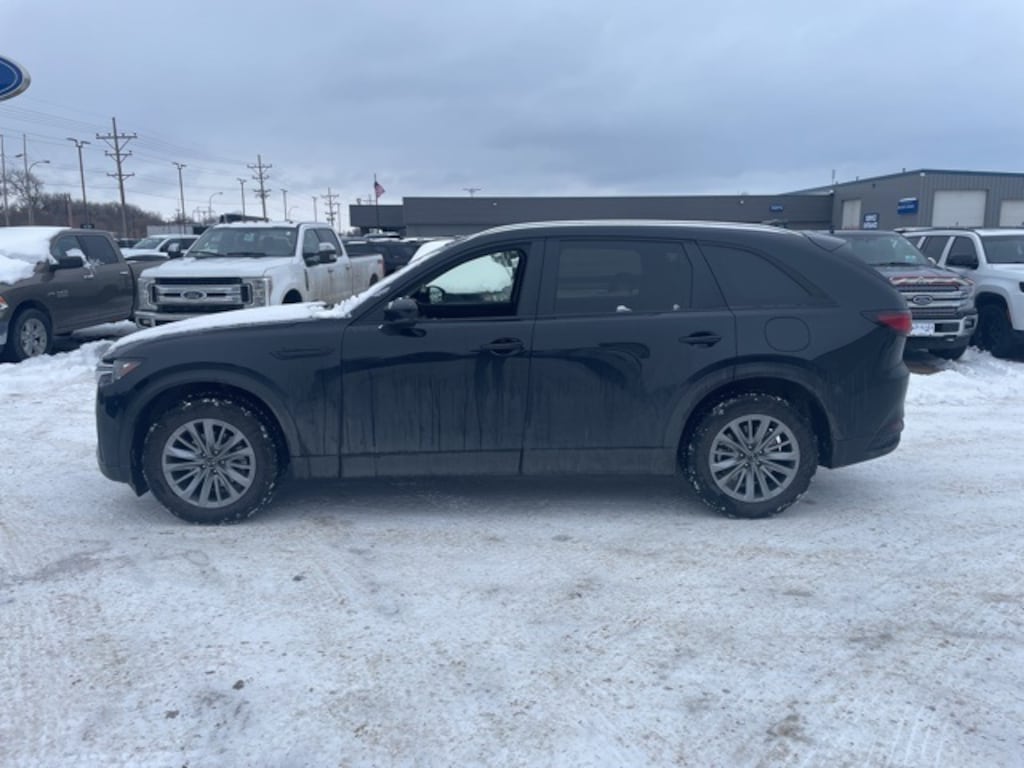 The 2024 Mazda CX-90 3.3 Turbo Select delivers refined capability with a turbocharged 3.3L e-SKYACTIV I-6 engine, smooth 8-speed automatic transmission, and standard all-wheel drive. Its bold exterior features 19-inch alloy wheels, LED lighting, rain-sensing wipers, roof rails, and deep-tinted glass for a confident, modern look. Inside, the CX-90 seats up to eight with versatile 60/40 split-folding second and third rows, leatherette-trimmed surfaces, a leather steering wheel, and a 10.25-inch full-color display. Mazda CONNECT, Bluetooth, Android Auto, Apple CarPlay, and an 8-speaker audio system keep you seamlessly connected. Advanced safety includes Smart Brake Support, Blind Spot Monitoring, Rear Cross Traffic Alert, multiple airbags, a back-up camera, Driver Monitoring Alert, and Mazda Radar Cruise Control with Stop & Go.